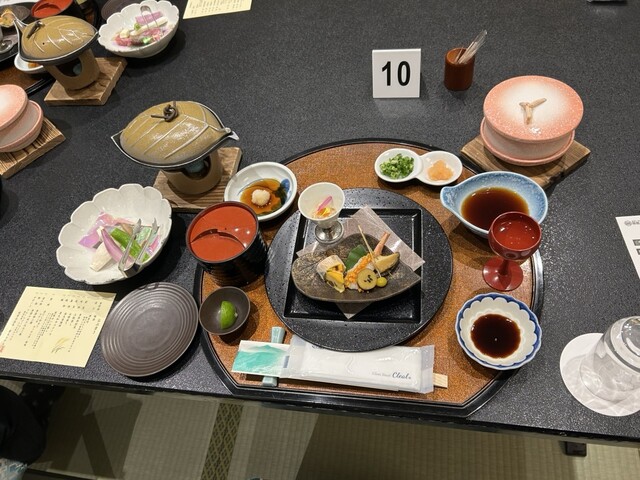 夕食のお料理は薩摩料理が中心で、多彩でした。お造りの中に、伊勢海老があったり、松茸の土瓶蒸し、黒豚の蒸し物、黒毛和牛のステーキほかを堪能させていただきました。大満足です。朝食は50種類のバイキング。鶏飯、カレーを少しずつと、豚角煮、黒豚しゅうまい、あくまきなど堪能させていただきました。こちらも大満足です。