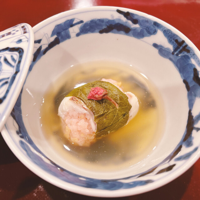 碗はイワシと関アジのつみれ汁、そして桜の羊羹とゼリーの春らしいデザートまで、最初から最後まで丁寧に作り込まれたお料理ばかりでした。
