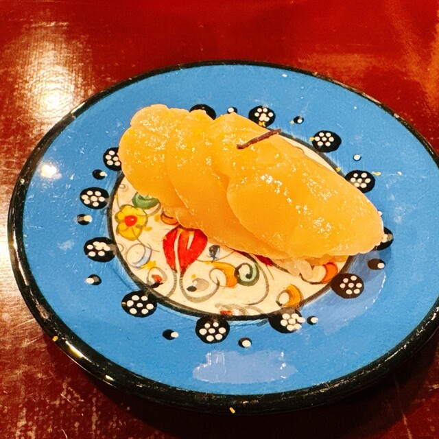 卵黄の漬けも濃厚な味が最高でした。スプーン置き用のお皿に卵黄が可愛く乗っていて大将の女子力を感じます。