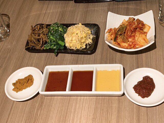 キムチ、もやしナムル、青菜のナムル、包み野菜