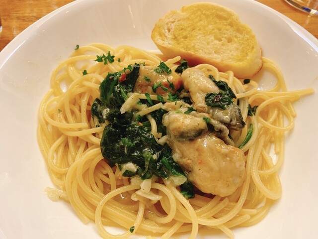 ・超こだわり塩味!牡蠣とホウレン草のペペロンチーニスパゲッティ