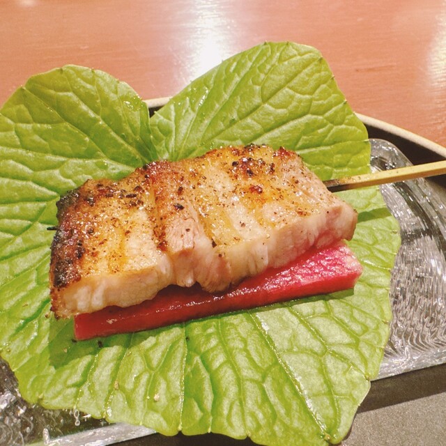 佐助豚の塩焼きが出てきてここでテンションが更にUP!豚の甘さって罪深いですね。そして岡崎さんが甘さを引き立たせるように入れた塩の加減がまた良い❣