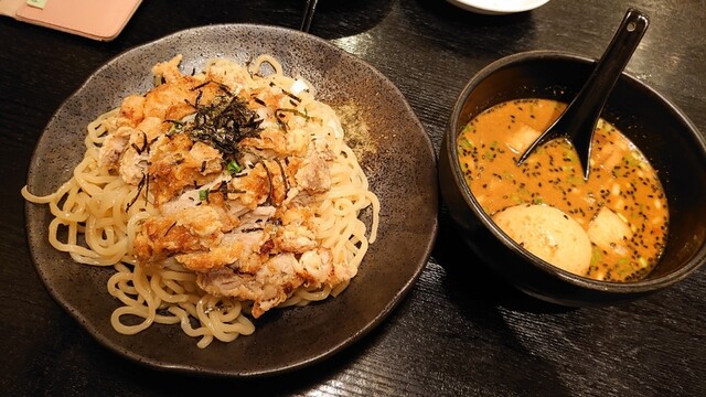 昨日も陳記。引っ越して長いですがたまに戻ってくると必ず来てます。やっぱりお疲れ様セットがいいですね。昨今の値上がりの影響か1000円超えてしまいましたが、飲み物と小皿料理2皿でとってもお得です。加えて昨日は辛味噌鶏天つけ麺を。美味しくてメガハイボール2杯いきました。