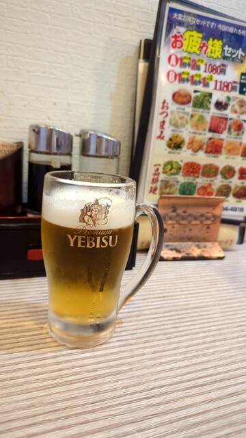 お疲れさまセットというビール+二つついてくるセットが最高です。 コスパがとってもいいのでついつい頼みすぎちゃいます。 味付けは四川風なのでちょっとピリ辛が強いですが、 大好きなので全く問題ありません。