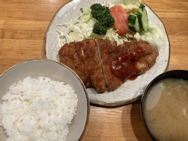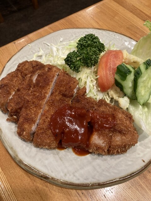 最初からケチャップが付いてます。ケチャップでロースカツを食べるのは初めてだけど、洋食屋さんのロースカツには合いますね。