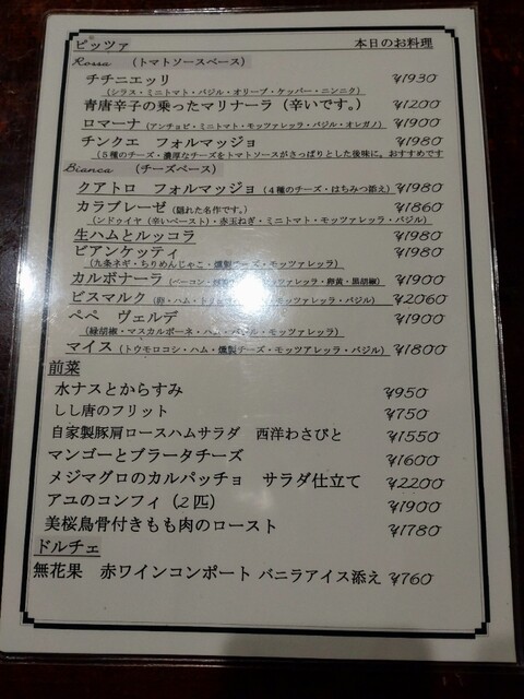 王道ピッツアから季節のメニューまで、どれを頂いても本当に美味しく、定期的に通っています。