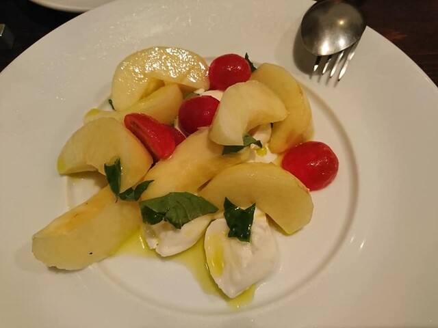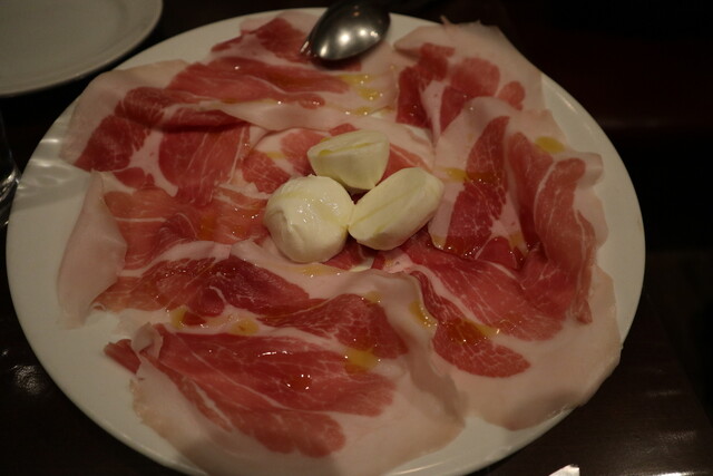 前菜は生ハムと白いちじくとゴルゴンゾーラ。柿も入っていて秋の味覚を楽しみました。