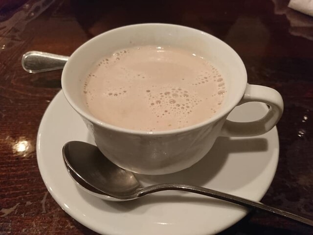 ドルチェは栗とコーヒーのプリンですが、ソースに埋もれて普通のコーヒーにしか見えない(笑)