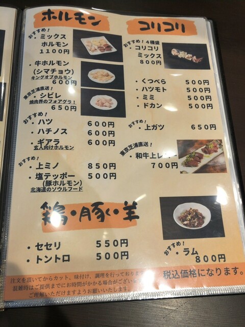 更に塩鉄砲、ミノ、シマチョウのホルモンセット、コリコリのミノが特に気に入りました。
