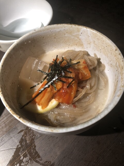 〆は冷麺とコムタンうどんから選べ、同僚は冷麺、自分はコムタンうどん。