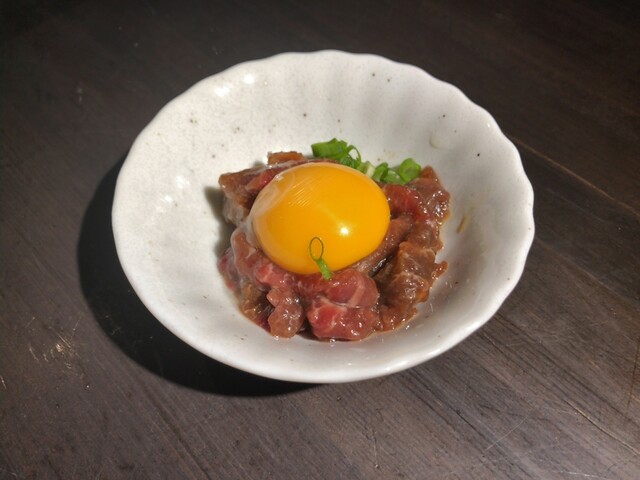 お肉のトップバッターは肉刺し♪ハツはプリプリ超えてブリブリw、ガツはコリコリ食感が心地良い、卵黄を溶いたラムユッケはビールが進む事進む事、最高か!