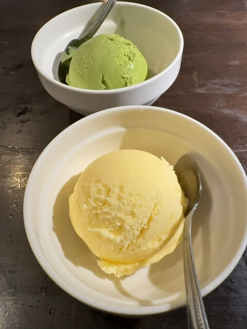 〆のアイスクリームは抹茶、いちご、バニラから選べます。