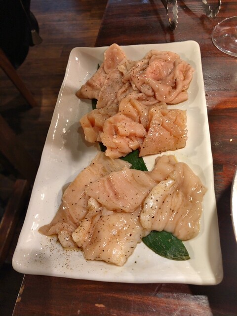 刺身で食べたい衝動に駆られる生レバー、軽く炙って胡麻油付けてパクリ、肉の甘みと胡麻油の塩味を舌に、日本酒で流し込む、む〜ん最高か!