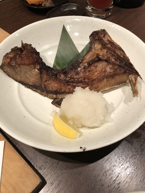 サーモンカマ焼き、鰤カマ焼きもお味見、柔らかく濃厚な味に満足。