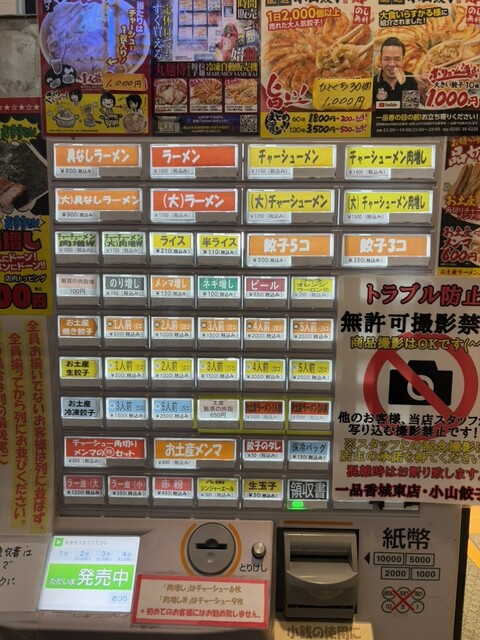 「チャーシューメン」「餃子5コ」「ラーメン」の食券を購入した。