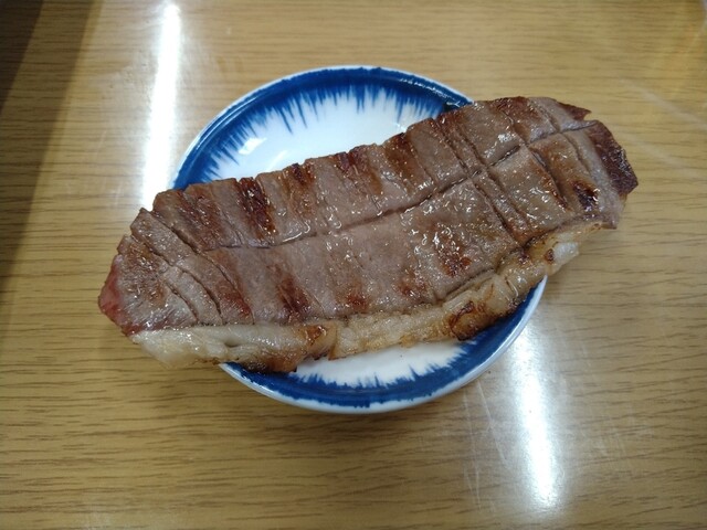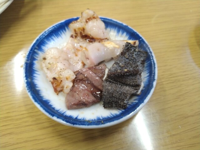 ・開店30分前くらいに注文を取っていただけるのだが、初回ということもあり様子見のつもりで、やや品数を抑えて注文。しかし入店後、ツマミより名物ホルモンより先に、注文品の中で一番高いミスジがいきなり到着!出し方の順序に違和感を覚えつつも手元にこの一皿しかないので、最後のトリにと思っていた一皿を仕方なく冒頭から口に運び・・・そこで小生の欲望は決壊した。セーブするという発想は霧散し、そこから先は追加注文の雨あられ。もしもお店が狙ってやったのだとしたら、完全に手の内に嵌ってしまったと言っていい。