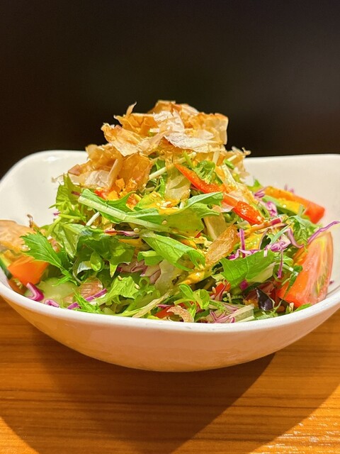 ボリュームたっぷりのサラダと汁なし坦々麺