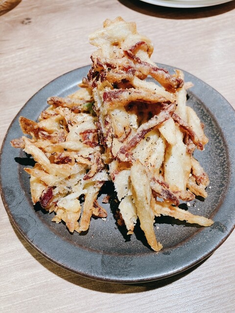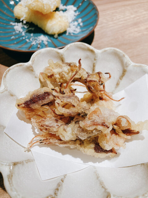 こちらのお店はワインによく合うアテとして天ぷらを提供いただけるのですが、提供される天ぷらは旬のものを活用し脂っこくなくあっさりしていて美味しいです(´∇`)