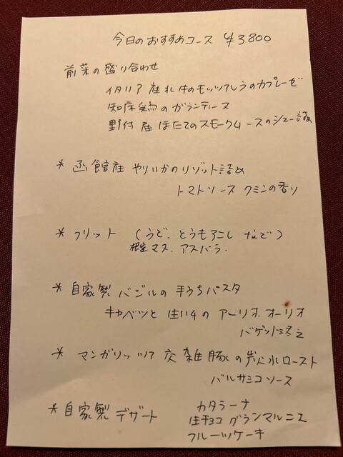 今回はディナーでの訪問となりましたがせっかくなので、今日のおすすめコースをオーダー