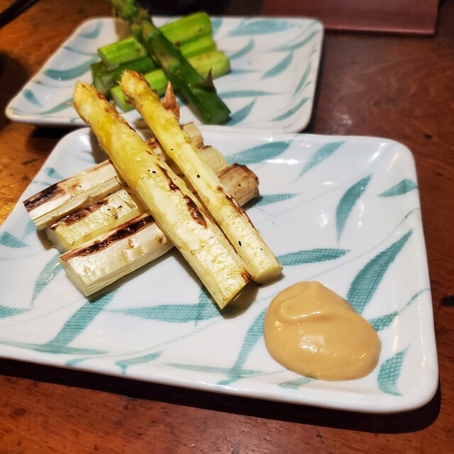 白アスパラは辛子味噌マヨネーズをつけて頂きました