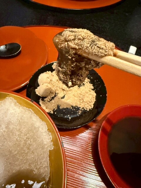 こぼさないよう器を近づけてするりと口へ滑り込ますと本わらびの上品な香りが口いっぱいに広がり、トロトロなのに弾力も感じると言う食感が期待値を遥かに超えてきます(*゚▽゚*)