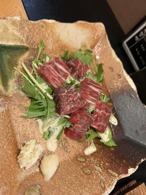 写真を撮ってない料理もあるが7000円のコースで考えられない満足度。馬刺し、鮎、活ダコ、うに、鮑、ホタテ、黒毛和牛などなど。
