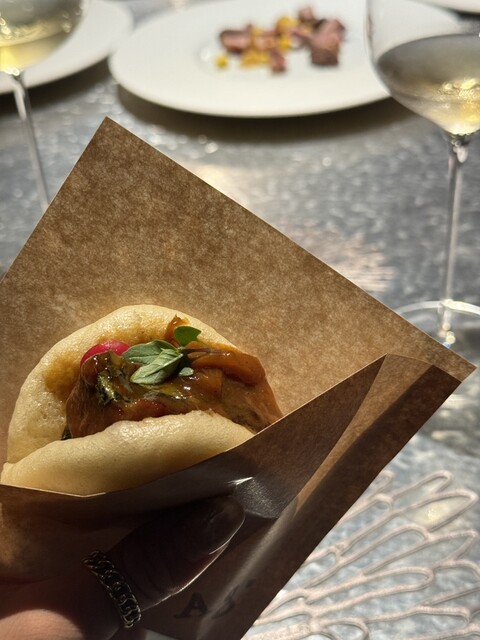 ドリンクはペアリングでいただきました。塩谷さんのその日の気分と料理との相性でセレクトしているそう。