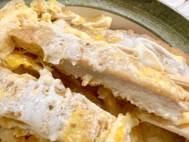 卵とじのかつ丼、甘めのたれが染みてて懐かしいおいしさ。