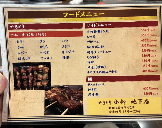 さっき電話してたお店、やきとり小柳地下店を見つけました。