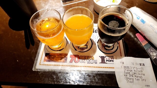 1人でしたので予約せずにイン。最初は相席へ座りましたがカウンター席が空いた所で席変更の案内をいただきました。まずは飲み比べから勿論、両国にです。まあ飲みやすくて、あっと言う間に完飲です。オーダーはスマホからで迷ったらこれをせんたくしたら仕組みを理解しました。ビールに無料食べ物がセットになる仕組みなんです。ーね。これは良いシステム。しかもどれも美味です。両国駅から徒歩3分の聖地でした。お近くへお越しの際は是非お立ち寄りください。1人でも全く飽きません。また行きます(笑)