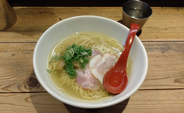 5分程で熱々のラーメンが提供されてました。澄んだスープに大判のチャーシューが入入っていて、見た目から食欲をそそります。一口スープを味わうとやさしい鳥の旨味を感じさせてくれました。麺は細めのしっかりとしたコシの強い麺で、最後までコシの強さを味わうことが出来ました。魚介系の塩ラーメンもいいですが、軍鶏も出汁が効いたこの塩ラーメンは癖になります。次回は特製の塩ラーメンを注文したいと思います。どうもご馳走様でした。