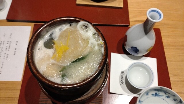 土曜日の7時半に予約をして2名で利用。池袋の喧騒から少し外れた場所ですが、予約だけで満席のようでした。先付は焼き目をつけた白子の蒸しものでしたが、これが絶品でした。ビールで喉を潤した後、八寸から日本酒をオーダー。杯が進む料理のオンパレードです。手の込んだ小鉢を愉しみながら春鹿の熱燗をいただきました。お造りからお肉料理と移り小鍋仕立ての牡蠣も風味豊かな味わいでした。料理とお酒で満腹に近くなってしまったので、浅利と雑魚の炊き込みご飯は軽くよそっていただきました。残りのご飯はおにぎりして持ち帰ることができたので、美味しさを自宅でも味わうことができました。