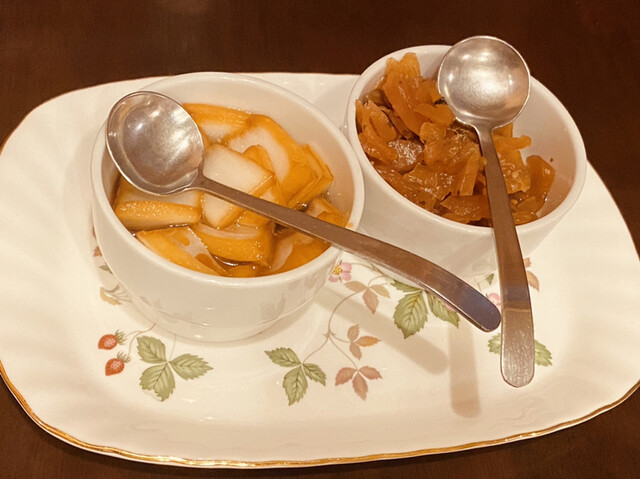自家製の福神漬けと玉ねぎの漬物もおいしいく、一口を食べた後、口をリフレッシュして次の一口を楽しめる仕組みが最高!