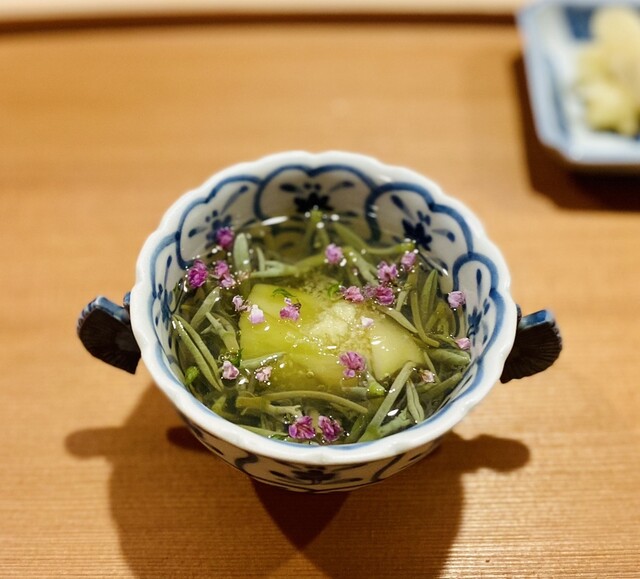 ごちそうさまでした!一品一品が凄かった、じゅんさいは自分の故郷の名物で、まさか日本で食べれるのはびっくりしました、そしてめっちゃくて感動!幼いタイとスミイカも店の個性を発揮し、凄くうまかった!特にゲソを使う寿司屋は初めてみた、あれは凄かった。シャリもきちんと温度管理しつづ、食材の風味を丁重に引き出している。