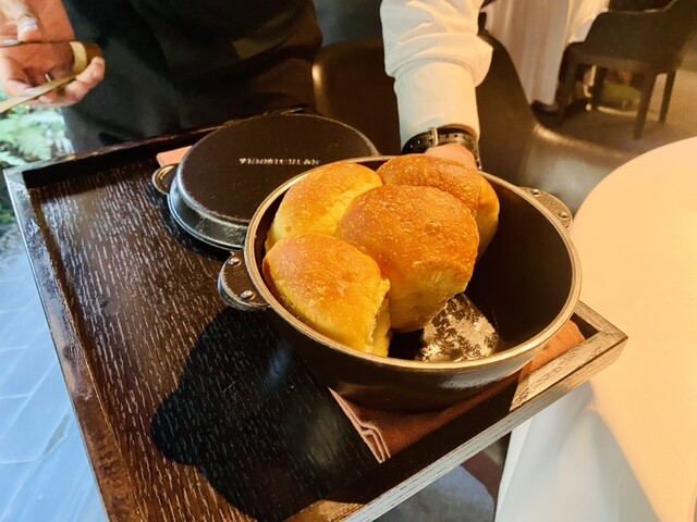 50種野菜のサラダ、シンプルだけど、凄くリスクを背負う一皿、いい野菜を使っているのがわかる。酸味がメインのドレッシングをかけただけど、野菜本来の風味が更に目立つ位置になって、50種類の野菜全部好きを言える人は多分そんなにないだけど、いろんな野菜を食べさせてほしいのシェフの本音が伝わってくる一品。生産者を尊敬する証のような料理。