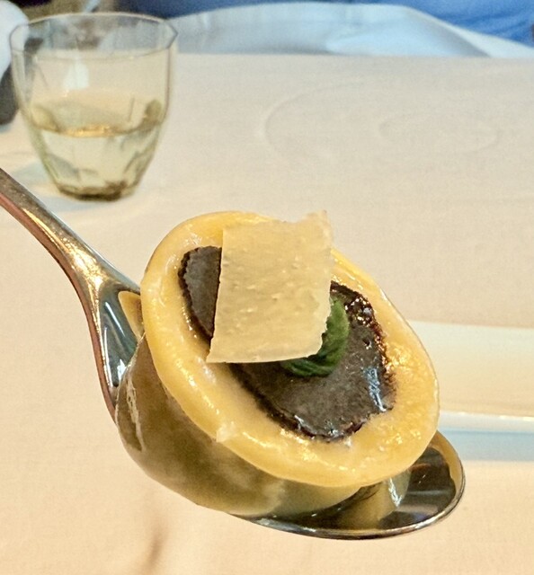 BLACK TRUFFLE EXPLOSIONは、口に入れた瞬間に凝縮されたトリュフの旨味が爆発。ラヴィオリの中に閉じ込められた香りと味の層が深く、ただのトリュフ味ではなく“トリュフという味の物語”を感じる最上級の体験。
