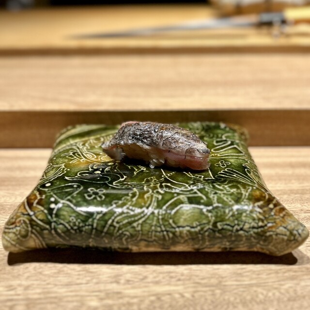 皮目がほんのり桜色で見た目から春を感じる一貫。ほんのり甘く上品な味わい。