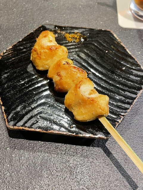 ぼんじりとネギの「ねぎまスタイル」で提供されるちょっとユニークな一串。皮はパリッパリで、脂の甘さがネギの香ばしさと見事にマッチ。