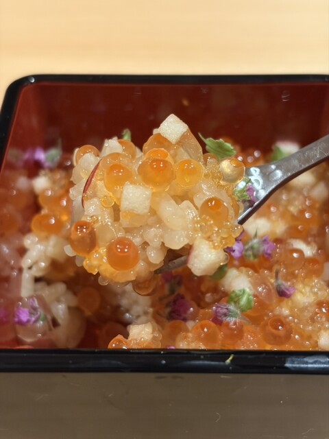 甘み、酸、旨味の波状攻撃が静かに押し寄せる。一口で食べたらもうこれ以上の口福はないです。