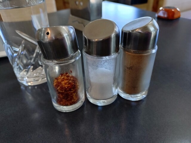 辛さに慣れてきたので卓上のチリパウダーと塩を振りかけて辛口チューンでラストスパート。