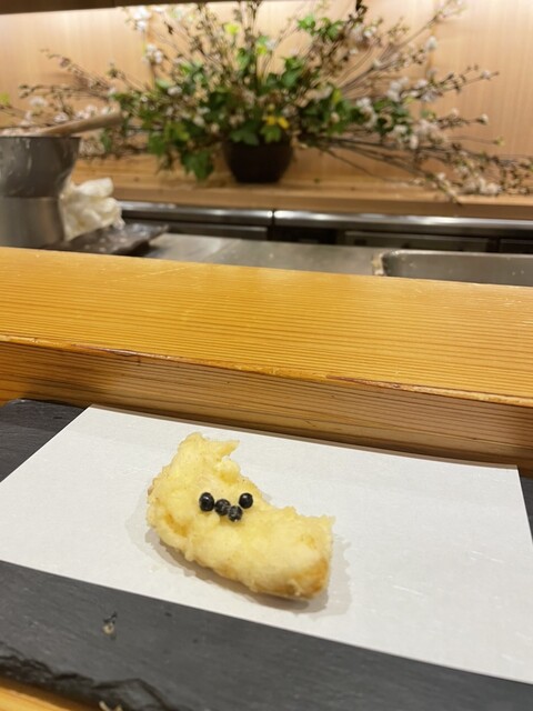 たけのこにマグロ節、大葉、パルミジャーノの組み合わせは絶品でした。大将のその場の思いつきらしいです!