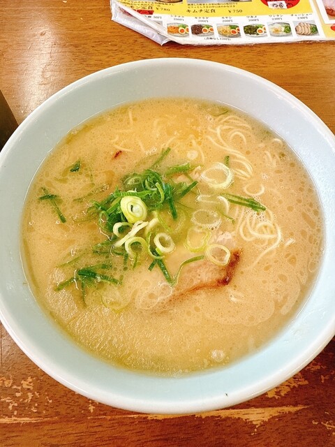 ラーメンは550円とは思えないクオリティで、しっかり濃い豚骨です。麺は久留米系かな。中細でちょい固め。チャーシューはメニューとは見てくれがかなり違うけど、スープに沈んでまあまあ入ってました。薄いのでライスを包んでいただくと旨旨。