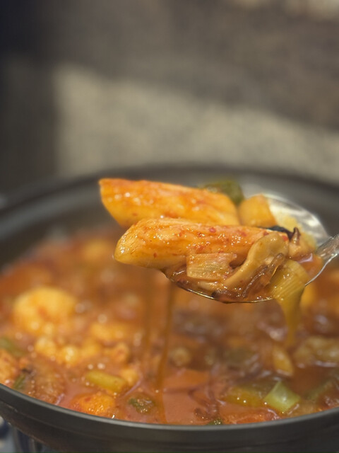 私は海鮮チヂミをチョイスしたのですが、表面はカリッと