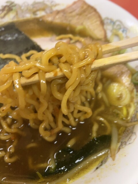 もちろんカレーラーメンを注文。大盛りかチャーシューメンか迷いましたが、自分も相方もチャーシューメンに決定。いや〜美味しいです♪10数年前に室蘭の大王さんで食べた味を思い出しました。スープカレーのようですが、食べてる時も食べ終わってからもそんな感じはしません。なんでだろ?ラーメンなんです!カレーラーメン!麺もこのスープに合っていて最高に美味しいです♪チャーシューはちょっと硬めです。味噌とか醤油味食べてみたいですが、またきっとカレーラーメンを食べるんだろうな〜。後から入店したお兄さん、醤油大盛りを注文していました。