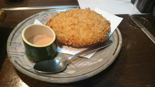 肉厚で旨い。揚げたおご海苔とビーツソースが