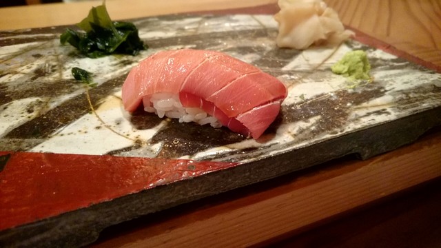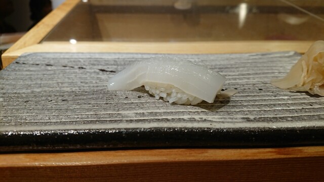 京都祇園、花見小路から脇道に入った閑静な場所に立地。設えから見た目敷居が高く感じる。祇園に江戸前鮨を食べさせる店があると聞いたのは1年前。それからチャレンジするも2度予約できず、3度目にしてようやく予約成就。店内はカウンター7席に2掛けテーブルが2卓(4人掛けが1卓)のこじんまりした店。大将が1人で切り盛りしているが、仕込みと手際が良いので待たされる事はない。こちらは、ツマミから握り、最初から握りのおまかせのみ。当日は迷わずツマミから。ツマミは空豆からはじまり5品。どれも旬の肴で、刺身以外はひと手間かけており、味に飽きがこない。握りは11貫に〆の玉。シャリは赤酢を使っているが、思ったほど酢はタッておらず、大きさは、やや小ぶり。関西にありがちな水っ気の多いシャリではなく、固めに仕上げられ、シャリが一粒一粒たっている感じ。握りは綺麗な船形をしており、江戸前なので塩や煮キリ等を塗ってあるので、そのまま食べるスタイル。はっきり言って旨い、名店の部類に入る店。値段は銀座並みですが、一度は来店をおすすめする店です。予約の大半が18:00-19:00であるため、大将と料理を独り占めできる開店直後の来店を特におすすめします。
