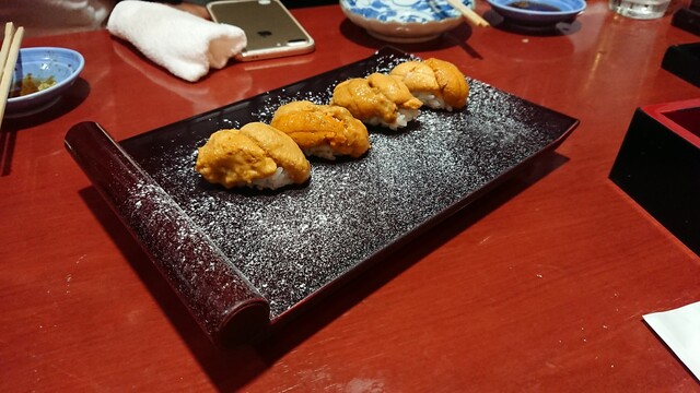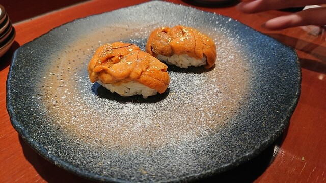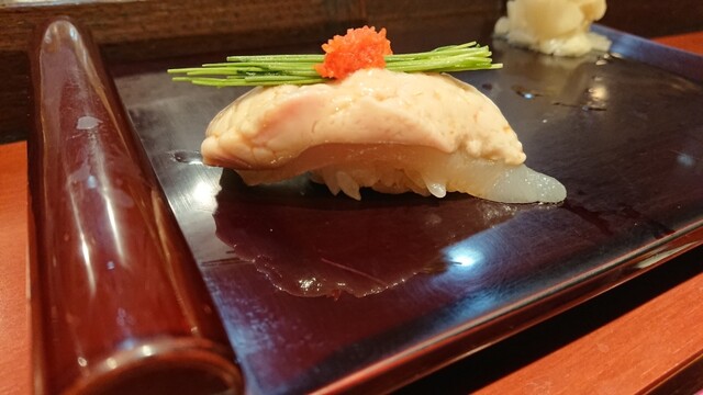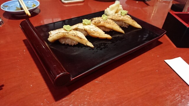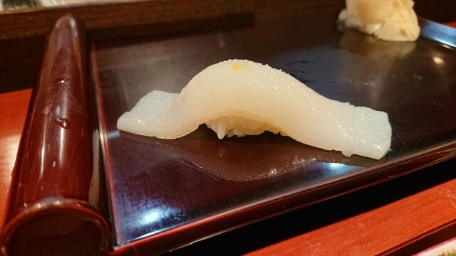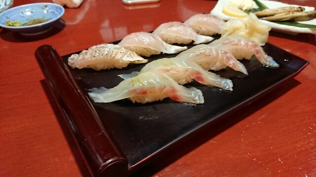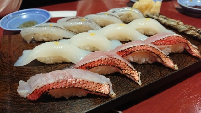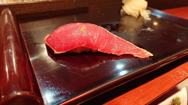 東京浅草新仲見世通りに立地する寿司屋。1Fでは回転寿司を営業しているので要注意。そちらではなく1F店舗の右側にある狭い階段を上がった2Fがこちらの店。お気に入りの1軒なので再訪多数。仕事のされた握りをそのまま食べる江戸前スタイル。仕込み自体も時間をかけて丁寧にされており、何につけタネが最高。常に最高の状態であるタネしか仕入れをしていないので、少し大袈裟ではあるが『まさに外れなし』。当日は直前に電話しての訪問。仕事納め翌日という事もあり珍しく空いており、先客が帰った後は閉店まで1時間程貸し切り状態。板前が1人で握るため、他の客がいるとどうしても皿出しが遅くなる。申し訳ないが板前を独占できるこの状態は最高。当日の支払いは2名で14,069円。本格江戸前がこの値段で食べられるのはこの上ないコスパ。