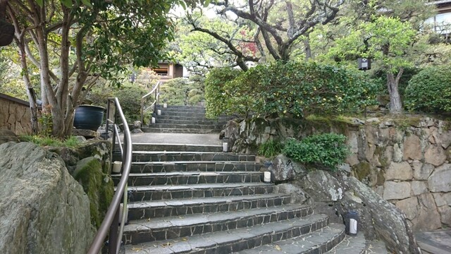 香川県琴平町にある温泉旅館。金毘羅さんの参道入口から500m、琴電琴平駅から1km弱と、どうにか徒歩圏内。自動車利用が無難ではあるが、旅館敷地に入るために急峻なスロープを上らなければならず、しかも金毘羅さん側からしか上れないため注意が必要。道幅も狭いうえ『急峻な坂道』である事を考えると、運転初心者は避けた方が無難。自動車は玄関前に着けると、キーをスタッフに預けて移動してもらうスタイル。翌朝も玄関前にスタンバイしてくれるが、建物前の駐車スペースは台数が限られており、ここが満車だと少し離れたスペースに移動されるため、車内への忘れ物には要注意。