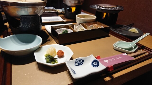 懐石でも意外と前菜から数品をまとめて出す旅館もあるが、こちらは完全な一品出し。皿出しのタイミングは完璧とは言い難いが、次々と運んでくるわけではなく、ゆっくり目なので良しとする。まあ、このあたりは、早い遅いを伝えれば済む話し。一品出しなので温かい料理は温かいうちに(食器も温かい)、冷たい料理は冷たいうちに食べる事ができ、盛り付けも完璧。生もの(鮪、平政、桜鯛、鰆と、質・鮮度とも文句なしで、たまり醤油がよくあう)、揚げ物、焼き物、どれも文句なし。味付けも濃すぎずにいい塩梅。特に刺身は