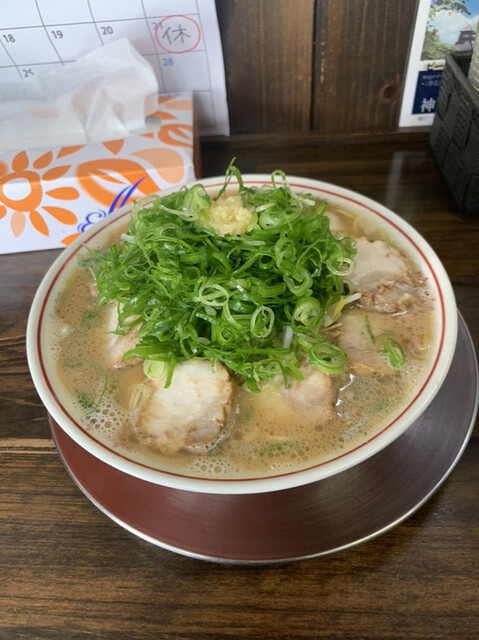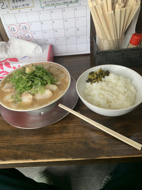 恒例の山創です。本日も開店前から並びましたが、毎度のごとく客入り良いです。注文はいつものチャーシュー麺大盛りとライスに今日はハーフにんにくのトッピングをしました。にんにくが増すことでスープが更に旨し。